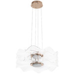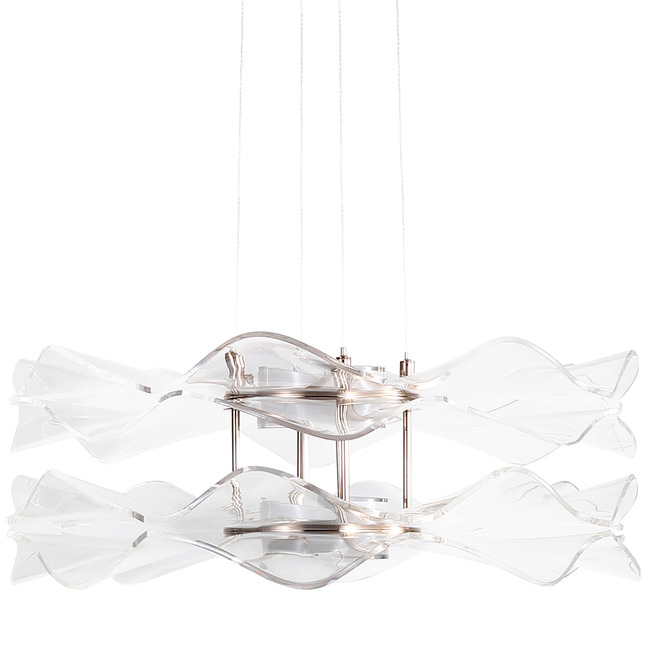 Drawing from the intricate elegance of early Elizabethan collars, Vetrina features wave-like glass layers that gracefully wrap around its central metal structure, echoing the organic growth of flower petals. The interplay of delicate glass and sturdy metal creates a breathtaking sense of depth and movement, making this piece a true masterpiece of design. Each set of clear acrylic ruffles is illuminated by an energy-efficient LED disc, offering bright, even light that enhances the fixture's dynamic form. With its smooth, gradual dimming through a triac system, Vetrina allows you to effortlessly adjust the ambiance to suit your mood.