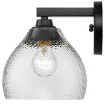 Enhance your home's decor with the beauty of the Ariella Wall Sconce. With an eye-catching silhouette that invites onlookers, this sophisticated series features rustic textured glass and stylish, modern forms. Ariella's beautiful hammered glass shades hang by gravitational tension on the conical caps. The hand-blown artisan glass plays with light, reflecting, refracting, and creating stunning shadows.