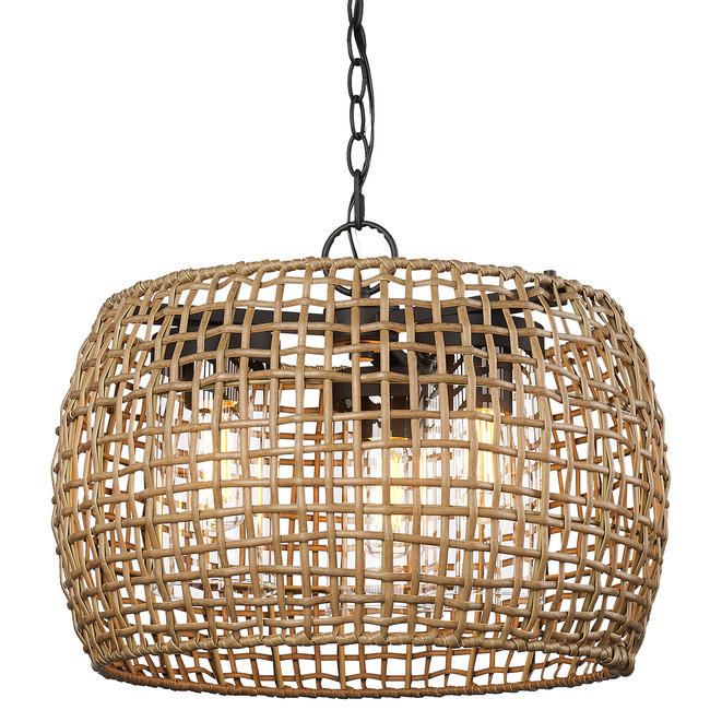 The Piper Outdoor Pendant in Natural Black combines boho elegance with a black finish and a wicker shade, creating a stylish ambiance that elevates patios and porches.