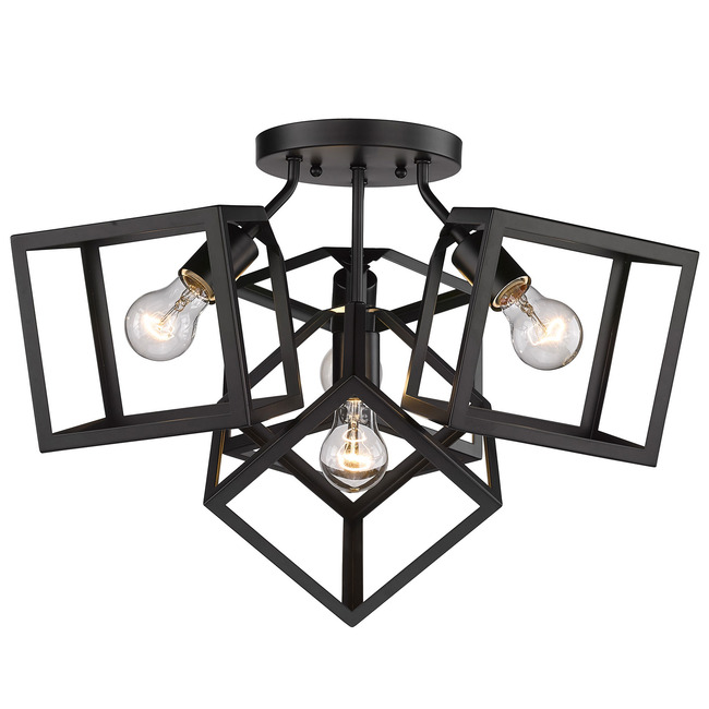 Strong, industrial lines and a unique geometric design are the basis of the Cassio series. Dramatic, double edges and bold lines make Cassio a focal point that is sure to add visual interest to any space. As if frozen in space, exposed lamps sit within suspended 3-dimensional cubes. The open, glass-free cage lends an airy, playful tone while providing utility in the form of widespread light and easy bulb changes.