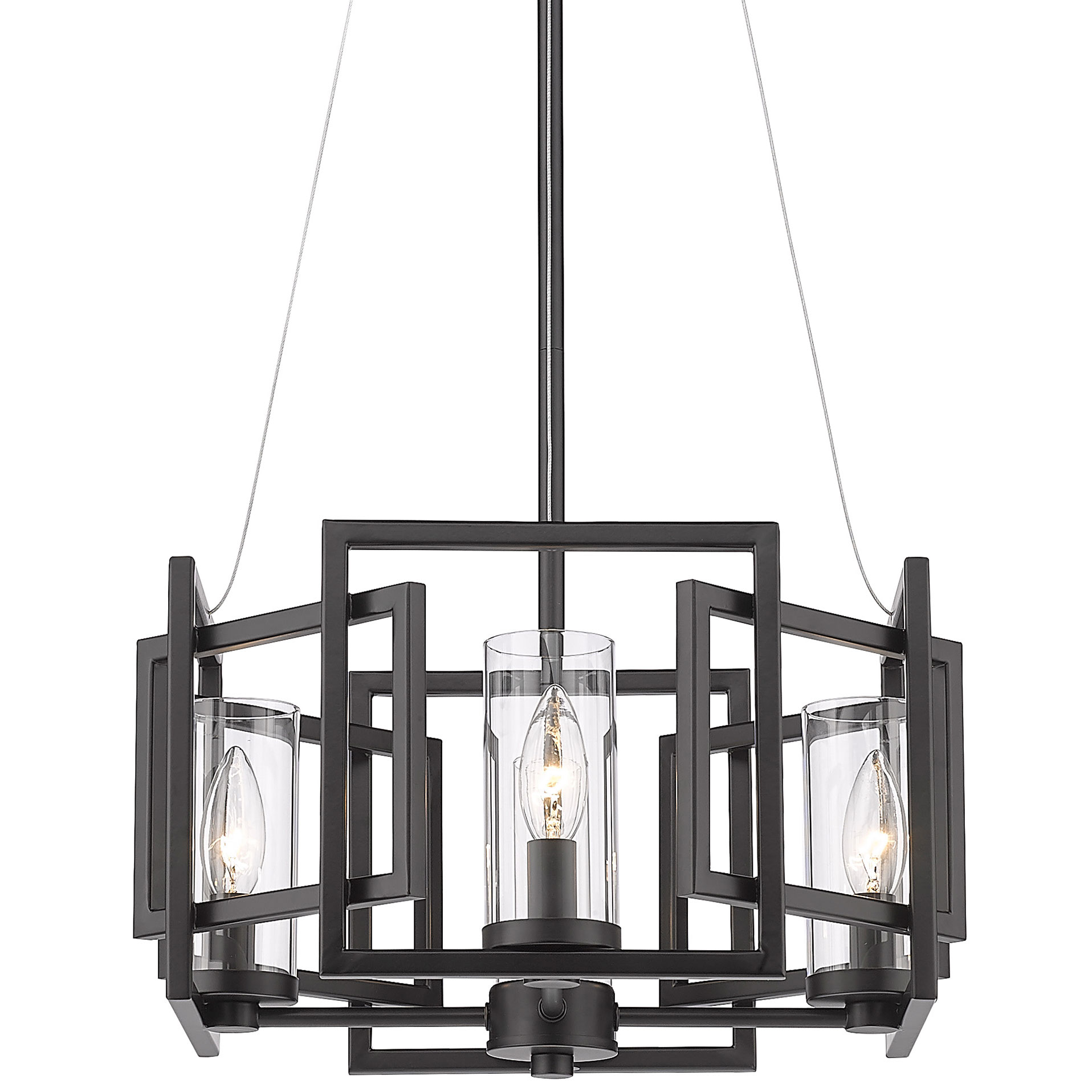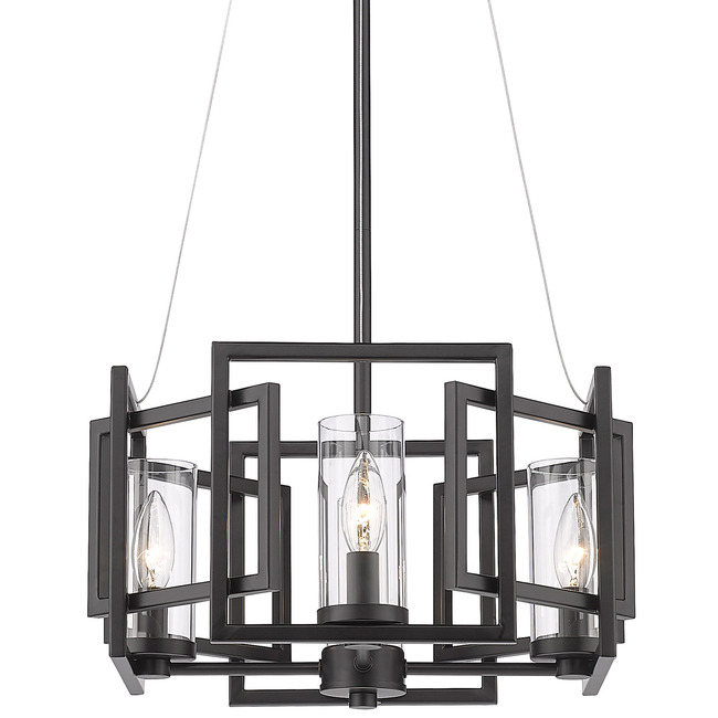 Sleek angles and a geometric form make an ultra-modern statement in the Marco collection. Clear glass cylinders house stately candelabra bulbs.