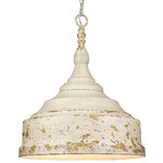 The Keating Collection, with its rustic finishes, fits well in homes with farmhouse decor. The pendants' finish features a rusty patina that hints at a bygone era. To reflect even more light, the interiors of the shades are hand-painted with a bright white color.