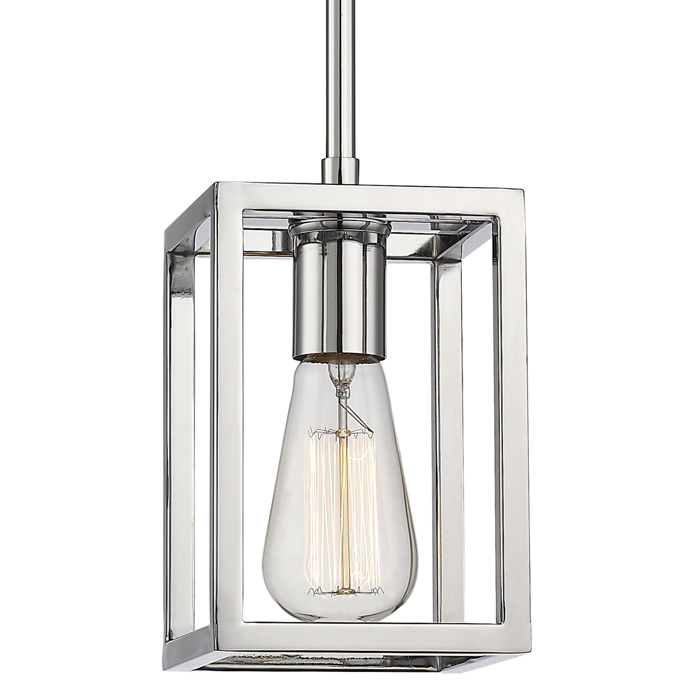Wesson is a clean contemporary collection. The industrial look is enhanced by the exposed medium-based bulb inside the square tubing of the open, geometric cage. Complete the modern, rustic look by installing Edison Bulbs. This mini pendant can be hung alone or in a group.