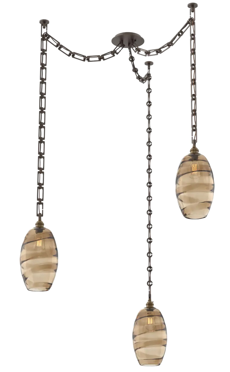 The Ellisse Rectangular Chain Swag Chandelier brings both form and function to your interior space. The decorative, rectangular link chains hold shades, complemented with a ribbon of molten crystal glass, that cast warm shadows of light across your room. Each Piece is a unique work of art. Sloped ceiling compatible to 45 degrees.