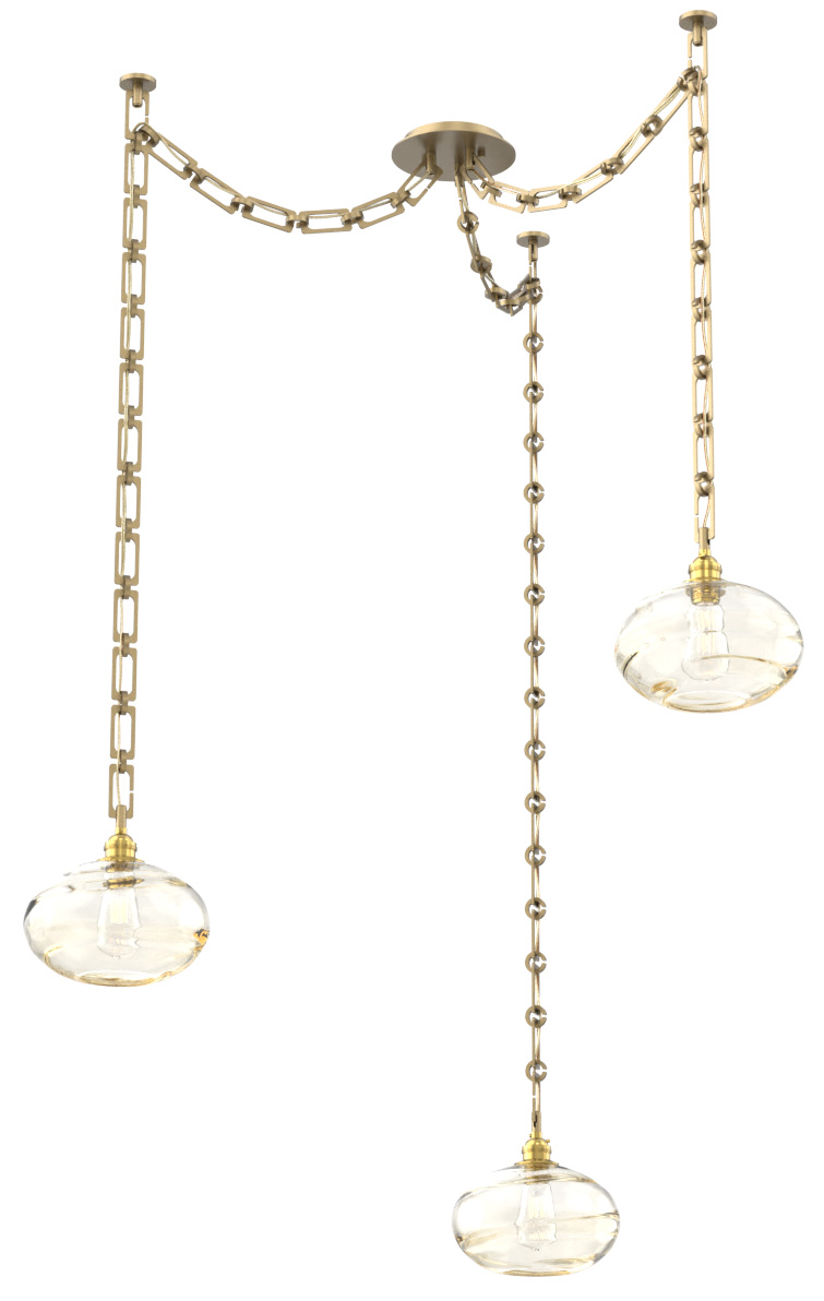 The Coppa Rectangular Chain Swag Chandelier creates a magic dance of light across your interior space. The decorative, rectangular link chains hold shades, complemented with a ribbon of molten crystal glass, that cast warm shadows of light across your room. Each Piece is a unique work of art. Sloped ceiling compatible to 45 degrees.