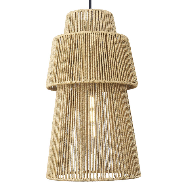 The Twill Pendant features an open weave in natural fiber, this elongated double-tiered cone pendant exudes elegance and accentuates its unique shape.