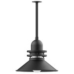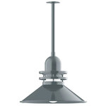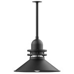 The Atomic Outdoor Rings Stem Pendant brings a traditional 1920's industrial look to your exterior space. The vintage perforated dome shade, with two rings around the top, surrounds a glass jar diffuser, casting warm light around your area. The polyester powder coat finish provides color retention and scratch resistance.