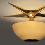 Like points on a star, the Laddi Shade Ceiling Light features a distinct yet referential form. This piece gracefully balances polished unlacquered brass base, with a luminous smoked glass shade to soften and filter light.