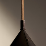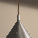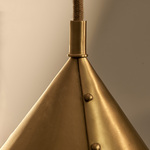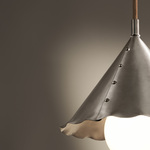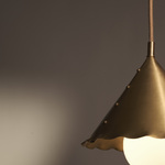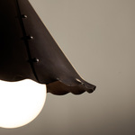 Inspired by the graceful form of the Asian Ashoka tree, the Petal Pedant features a simple cone shade with a delicately waved edge. Each shade is hand-shaped and riveted together and hold a frosted globe to soften the light.