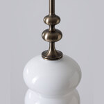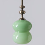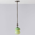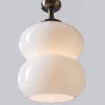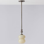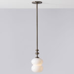 The Oestre Pendant features a handblown, opaque glass shade with a double ellipsoid shape for an understated but elegant look. Above the glass, the pendant's stem transitions into an organically curving, decorative profile which adds an elegant accent to the design.