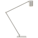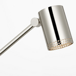 The Precision Articulating Table Lamp brings a harmonious mix of light and form to your interior space. A warm glow of light shines through the glass diffuser and highlights the holes on the base of the metal shade, creating interesting patterns of illumination and shadows in your room. Lower arm adjusts to 45 degrees maximum and the upper arm adjusts to 100 degrees maximum for an adjustable height of 19.5 inches to 30.25 inches. Dimmer switch of High/Medium/Low/Off is located on the back of the head.