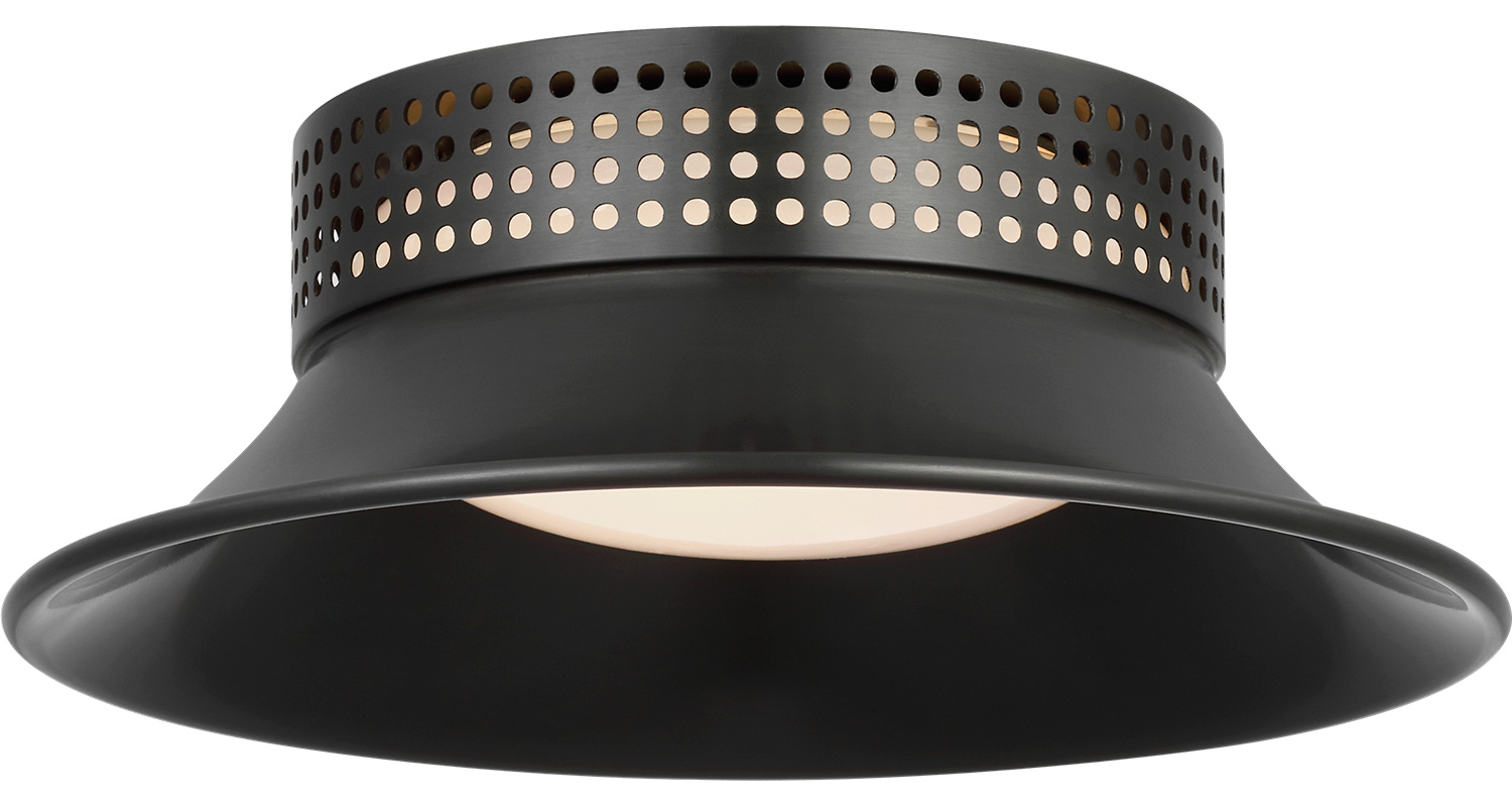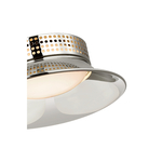 The Precision Cap Ceiling Flush Light brings a harmonious mix of light and form to your interior space. A warm glow of light shines through the glass diffuser and highlights the holes on the neck of the metal shade, creating interesting patterns of illumination and shadows in your room.
