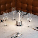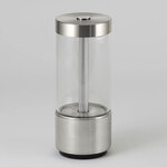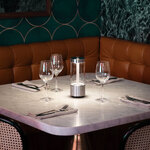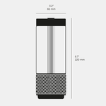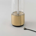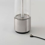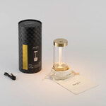The Takeout Portable Lamp is made from solid metal with Buster + Punch's signature cross-knurl pattern. A glass cylinder surrounds surround the unique light pipe light source, which can be cycled to 100%, 60%, and 40% brightness at the touch of a button. Takeout is IP65 rated for use outdoors in wet locations. Includes USB charging cable.