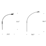 The Ms. Bowjangles Wall Sconce is characterized by its flexible stem made of a steel spring covered in fabric which winds its way around the lampshade. Ms. Bowjangles' asymmetrical silhouette features clearly defined curves and lines that draw the eye towards its unique design. The lampshade can be easily rotated, raised, and lowered to aim its light. The larger version includes both an uplight and downlight in the shade to provide ambient lighting as well as focused task lighting. The dimmer switch is located at the tip of the flexible cable in the small version, or as a foot dimmer switch in the larger version.
