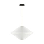 The Bicono Round Color-Select Pendant brings a modern, Italian inspired look to your interior pace. A trio of cables holds a acrylic diamond with a inner cylindrical light source that casts warm shadows of light across your room.