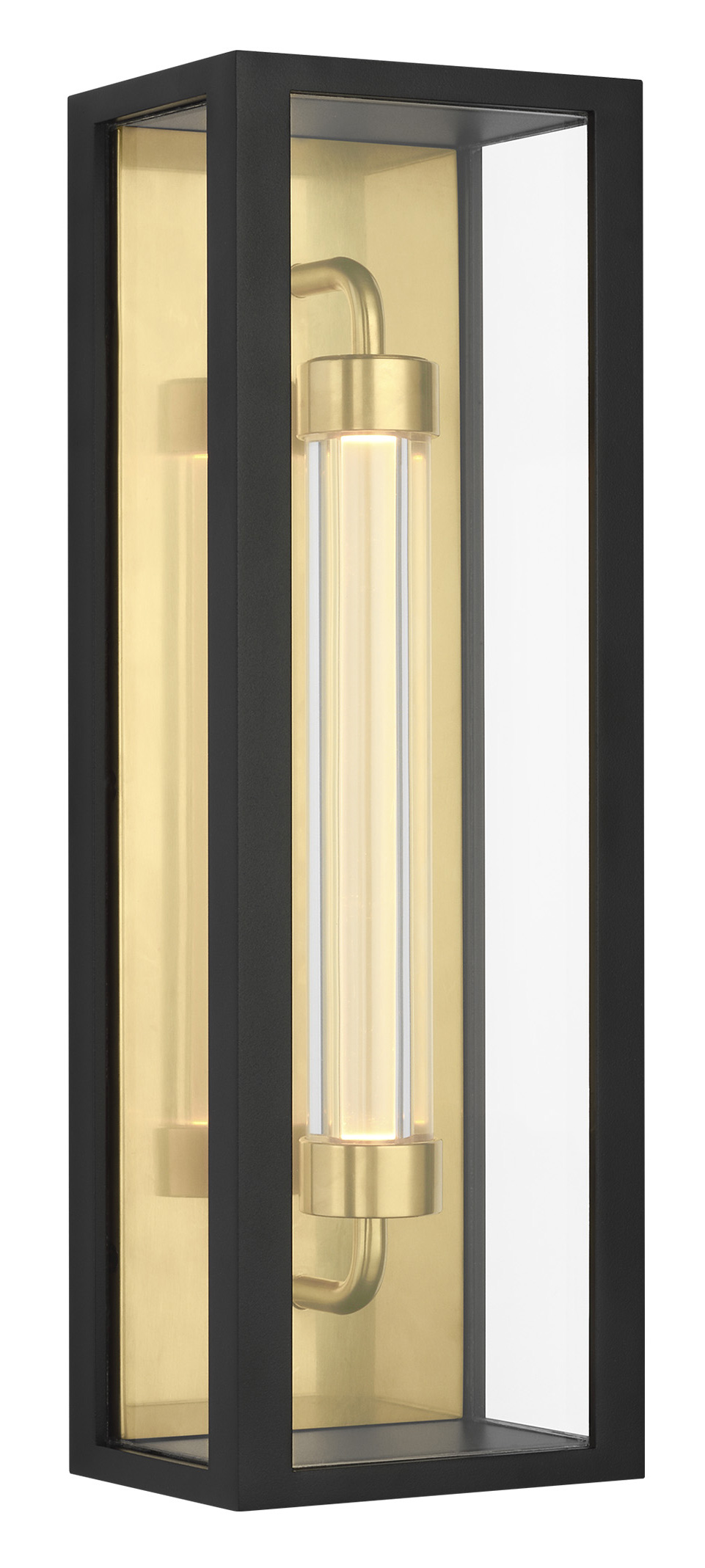 The Enferme Outdoor Wall Light brings a bold, almost classic look to your exterior space. The dual finished frame blends seamlessly into a variety of styles while the clear glass panels create a warm, ambient glow, casting soft, flowing shadows throughout your room.