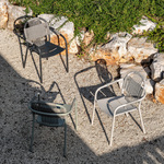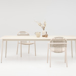 Comfortable and elevated, the Cleo Outdoor Dining Armchair is the perfect outdoor seating option. Its sturdy aluminum frame and has a self-protective layer to prevent corrosion, with dune white or misty dots polypropylene rope fiber backs. Pair with other pieces Vincent Sheppard to create a complete outdoor lounge area. For easy maintenance, use a fabric and upholstery protector to give optimal stain resistance.