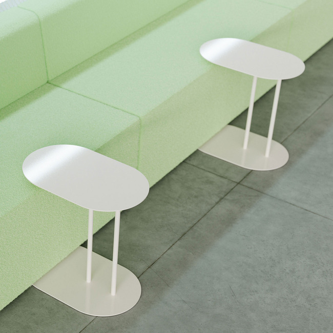 Designed by Skeehan Studio for Here Now, NAVE Side Tables are suited to a wide range of settings including domestic, workplace and hospitality. The tables can be specified in multiple powder coat finishes. The NAVE tables are complemented by stools, and shelves as part of the collection. The cantilevered design and low-profile base allow for pull-up underneath sofas, lounges, and chairs
