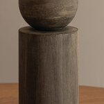 The Ralston lamp expresses modern simplicity through a rhythmic composition. Cylindrical and spherical shapes are paired with a simple white linen drum shade that fosters geometric continuity. The stacked solid mango wood base is finished in a rich tobacco stain that accentuates the textural grain. A touch of Patina Brass at the neck lends a timeless accent. ON/OFF switch on socket.