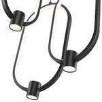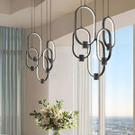 Make a splash in any space with a geometric motif as you illuminate kitchens, bedrooms, and living rooms. This oval LED chandelier delivers the classic open metalwork look with matte black finish aluminum creating suspended oval luminaires with dimmable LED downlights. A playful narrative unfolds in a fixture created for festive, bold style. Features color-select technology which allows user to select between 2700K, 3000K, 3500K, 4000K and 5000K color temperature options.