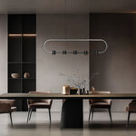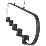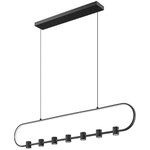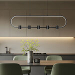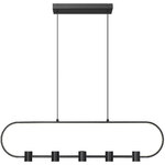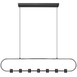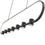Islands and other horizontal spaces welcome the reach and silhouette of this LED linear chandelier, a playful fixture style with refining shape. An oval matte black aluminum open metalwork body with multiple cylinder shades twist the conventional style of a fixture, giving it a home in casual spaces. Features color-select technology which allows user to select between 2700K, 3000K, 3500K, 4000K and 5000K color temperature options.