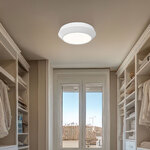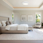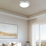 A low-profile design with a flared side silhouette becomes versatile and stylish as a single-light flush mount ceiling light adding LED-integrated illumination to kitchens, hallways, and bedrooms. Its clever shape features steel construction that emphasizes flexibility for coordinating with surrounding decor. Features color-select technology which allows user to select between 2700K, 3000K, 3500K, 4000K and 5000K color temperature options.