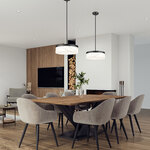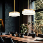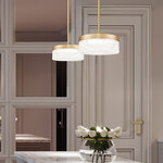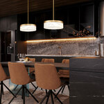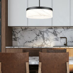 When a room needs a single strong focal point, this drum LED pendant light anchors the ceiling with its broad ring and feathered glass. The wide diffuser pours out an even, generous glow that can stand in for multiple downlights, making open-concept kitchens, game rooms, or loft living spaces feel bright and easy to navigate. As you shift the color from crisp daylight to a mellow evening setting, it guides the mood from productive to relaxed with one smooth adjustment. Features color-select technology which allows user to select between 2700K, 3000K, 3500K, 4000K and 5000K color temperature options.