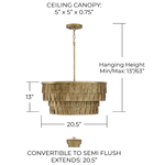 The Arden Dual Mount Pendant brings striking presence and depth to any space, offering a bold look from every perspective. Its tiered, drum-shaped form is accented by layers of curved metal details that create movement and visual texture. The design is elevated by a richly finished surface, adding warmth and a refined sense of character.