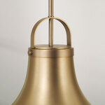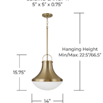 The Arlo Pendant features a bold, downward-tapered silhouette that brings visual appeal to any space. The aged brass finish adds warmth, while the subtle rivet accents introduce a touch of industrial detail. The rounded white glass diffuser softens the light, creating a warm, inviting glow. This fixture blends classic character with a refined, modern edge, making it perfect for kitchens, dining areas, or entryways.