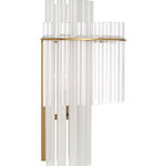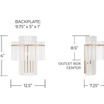 The Blair Sconce creates a striking visual effect through its layered arrangement of glass elements. Elongated etched glass tubes form an inner arc, framed by a surrounding band of shorter clear tubes, producing depth and texture. This thoughtful construction diffuses light beautifully, casting a soft, radiant glow while adding dimension and movement to the fixture's overall form.
