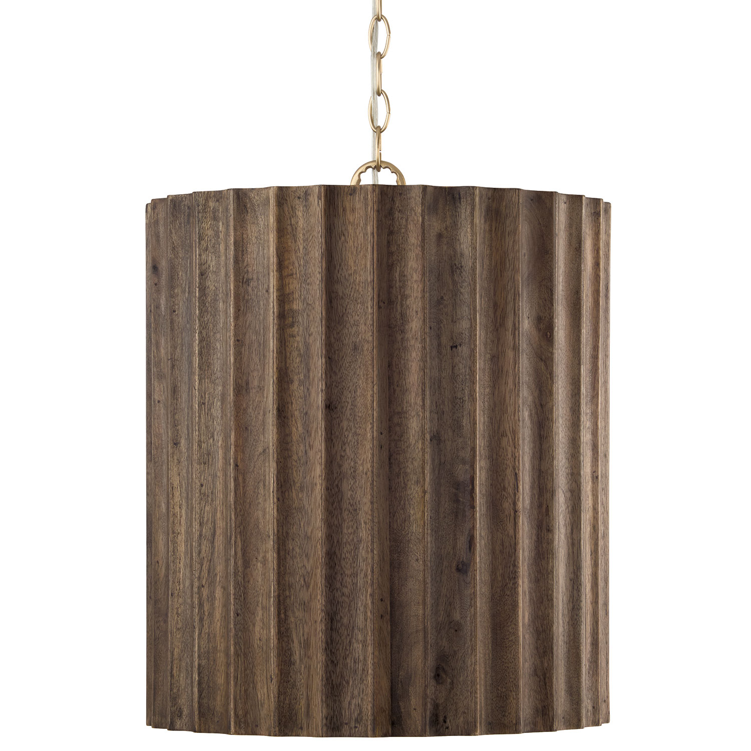The Cody Pendant showcases a bold, sculptural presence with its hand-carved surface and distinctive reverse fluted detailing, adding depth and visual texture from every angle. A smooth acrylic diffuser beneath softens the illumination, creating a warm, even glow that enhances the fixture's refined look. Natural wood elements bring an organic contrast to the design, while subtle metal accents introduce a hint of understated sophistication, making this pendant a striking yet versatile addition to a variety of interiors.