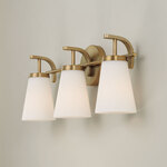 The tapered glass shades provide soft, even illumination, making it ideal for daily routines while adding a subtle layer of warmth to the room. With its understated detailing and versatile style, this fixture transitions seamlessly between traditional and modern interiors.