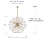 The Emelie Chandelier captures attention with its radiant, sculptural form inspired by organic movement. A cluster of textured glass elements is arranged in a spherical composition, creating a dynamic interplay of light and reflection.