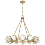 Romantic and refined, the Flora Chandelier brings a botanical-inspired elegance to a timeless ring design. Soft white glass globes are framed by intricate wirework shaped like delicate petals, creating a layered, sculptural look. The metalwork is finished in a warm Buffed Gold tone, adding a rich glow that enhances the fixture's decorative presence and makes it a striking focal point in any space.
