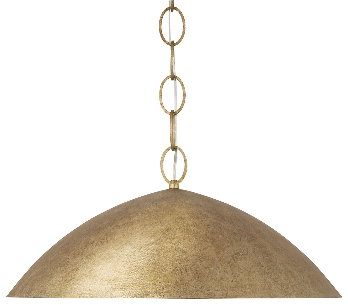 The Francesca Pendant showcases a refined, sculptural presence with its smooth shaped form and elegant suspension detail. A series of elongated links adds visual interest while creating a sense of balance and vertical movement, making it a striking focal point in any space.
