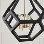 At the center, candle-style sockets are suspended within the dimensional frame, adding depth and visual interest. The layered construction and angular lines give the piece a bold yet balanced look, making it a distinctive focal point in a variety of interior settings.