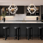 The Geo Pendant showcases a striking open-frame design that blends modern structure with natural elements. Crafted from mango wood, its multi-faceted form creates a sculptural presence while allowing light to pass through its geometric framework.