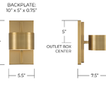 • Backplate: 5.5in W X 10in H X 0.75in L