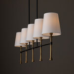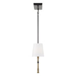 Thoughtful detailing adds visual interest, while the tailored fabric shade softens the light for a warm, inviting glow. A blend of finishes enhances depth and dimension, making this fixture a versatile addition to a variety of interiors.