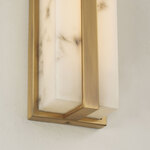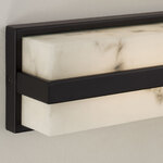 The Noah Wall Sconce offers a refined, modern look with its clean, elongated profile and minimalist detailing. A panel of alabaster-style glass gently diffuses light from an integrated LED source, providing a soft and even glow. The design features a full-length backplate complemented by a slim band across the front, adding an elevated visual design. Built to meet ADA standards, it serves as a stylish and space-efficient lighting solution for a variety of interior designs.