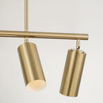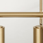 Defined by smooth cylindrical silhouettes, the Robbie Linear Chandelier brings a refined modern presence to any space. Its aged brass exterior is paired with a white interior for added visual contrast. Adjustable metal cylinders provide customizable light direction, ideal for both ambient and task lighting needs.