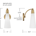 The Tess Sconce brings a refined, modern presence with its graceful curves and balanced design. A subtle accent detail at the top and where the arm meets the backplate adds a touch of character, enhancing its overall silhouette. The gently tapered glass shade diffuses light softly, creating a warm and inviting glow that works beautifully in a variety of interior settings.