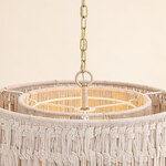 A soft sculpture of cotton cord, the Lisbeta chandelier celebrates modern craft. Woven in a circular knot pattern, the upper shade loops and links in a hypnotic rhythm while the lower shade is formed from simple vertical strands. Suspended by an Aged Brass chain, Lisbeta's bohemian beauty will add a dose of personality to any space.