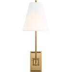 The Marina Wall Sconce by Chapman & Myers distills the collection's maritime inspiration into a single-light profile. Its clean frame, reminiscent of a boat hull, supports an arm that extends through and above the shadeintroducing subtle movement and depth. Perfect for hallways, bedrooms, or transitional spaces, the sconce offers a refined accent that enhances its surroundings without overpowering them. Marina's thoughtful detailing and layered silhouette make it a versatile choice for interiors that value both simplicity and sculptural presence.