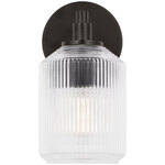 The Barstow Bathroom Wall Sconce by Chapman & Myers captures the essence of vintage prismatic glass in a compact, refined form. Its ribbed clear shade features vertical and horizontal cuts that echo the precision of industrial craftsmanship, while the minimal metal frame keeps the silhouette clean and architectural. This fixture is ideal for smaller vanities or paired installations beside mirrorswhere its sculptural clarity and polished detailing bring a sense of quiet sophistication to personal spaces.