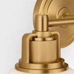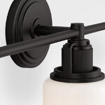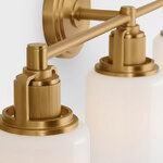 The Ashford Bathroom Vanity Light by Chapman & Myers offers a balanced expression of the collection's architectural clarity and knurled detailing. Its square arch bracket and circular collar mount a white cylindrical glass shade, while the open collar reveals the vertically knurled socket coverdesigned to coordinate seamlessly with a range of bath fittings. The vanity is ideal for vanities, guest bathrooms, or transitional layouts, where its refined proportions and industrial elegance bring cohesion and quiet sophistication to the space.