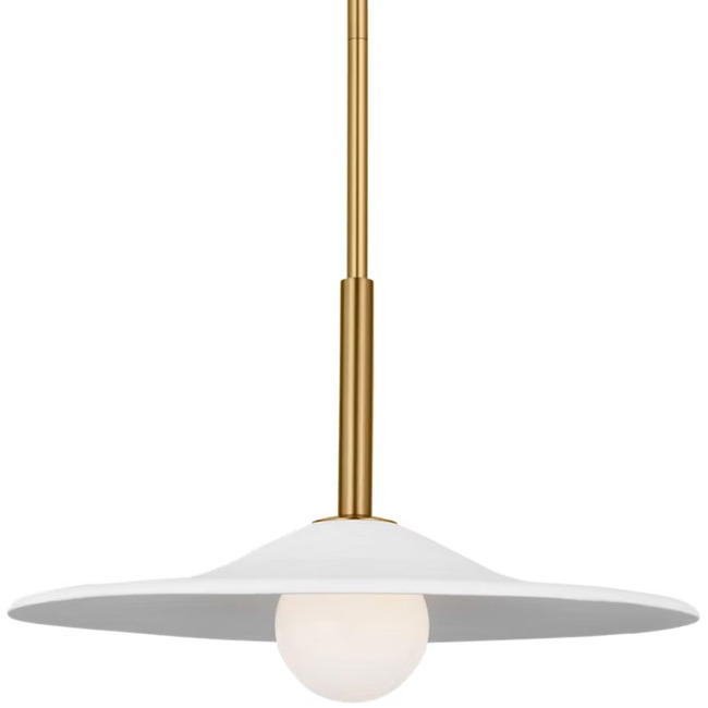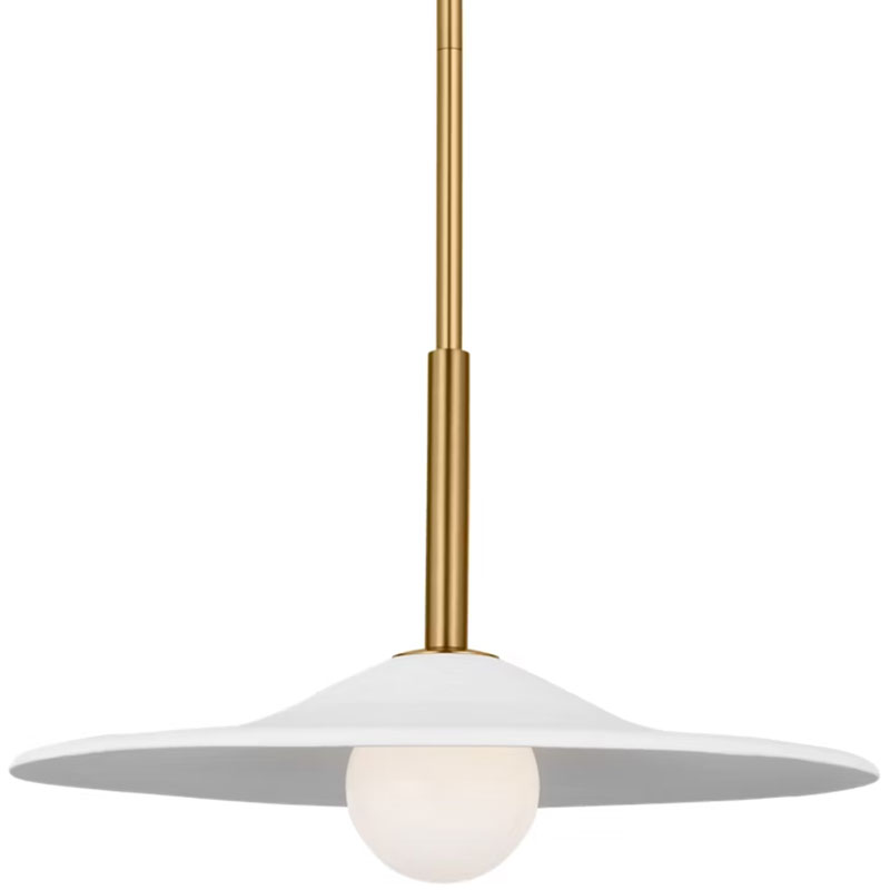 The Endicott Pendant by Kate Spade captures the sculptural essence of the collection in a suspended form. A gently slumped plaster disc hovers over a milk glass sphere, creating a soft interplay of light and shadow. Ideal for kitchens, breakfast nooks, hallways, or powder rooms, this pendant brings a sense of quiet elegance to smaller spaces. Endicott's exploration of form and material remains central, offering a refined accent that feels both modern and timeless.