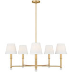 The Greard Chandelier by Alexa Hampton captures the essence of the collection's elevated and refined aesthetic. Suspended with poise, its natural linen shades diffuse light with warmth, while the clear decorative ball detail adds a subtle layer of glamour. This chandelier's balanced profile is ideal for bedrooms, foyers, breakfast nooks, and dining areas, offering a sculptural presence that complements both contemporary and transitional interiors. Its sleek silhouette and quiet sophistication reflect Hampton's modern take on traditional design.