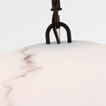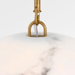 The Savina Dome Pendant by Chapman & Myers showcases the collection's sculptural elegance and material innovation. Crafted from mineral opalinea new addition to the brand's paletteits hand-formed domed shade evokes the natural beauty of alabaster, with unique veining that ensures no two pieces are alike. Mounted to a minimal metal frame, the pendant offers a clean silhouette and soft, diffused glow. With its generous scale, it's ideal for dining rooms, kitchen islands, foyers, and living roomsspaces where its organic texture and refined simplicity bring warmth and quiet sophistication.