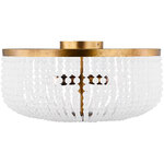 The Bellecour Ceiling Light by Christiane Lemieux reinterprets the collection's luminous geometry for lower ceilings and intimate spaces. Its vintage gilded frame and honed crystal beads diffuse light in a soft, flattering glowevoking the quiet glamour of late Art Deco interiors. This flush mount is perfect for bedrooms, hallways, or smaller dining areas, where its sculptural presence introduces serenity and elegance. Bellecour transforms functional light into a poetic gestureglamorous enough for evening, serene enough for day.